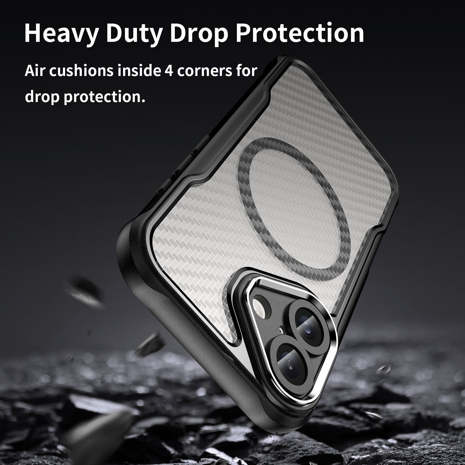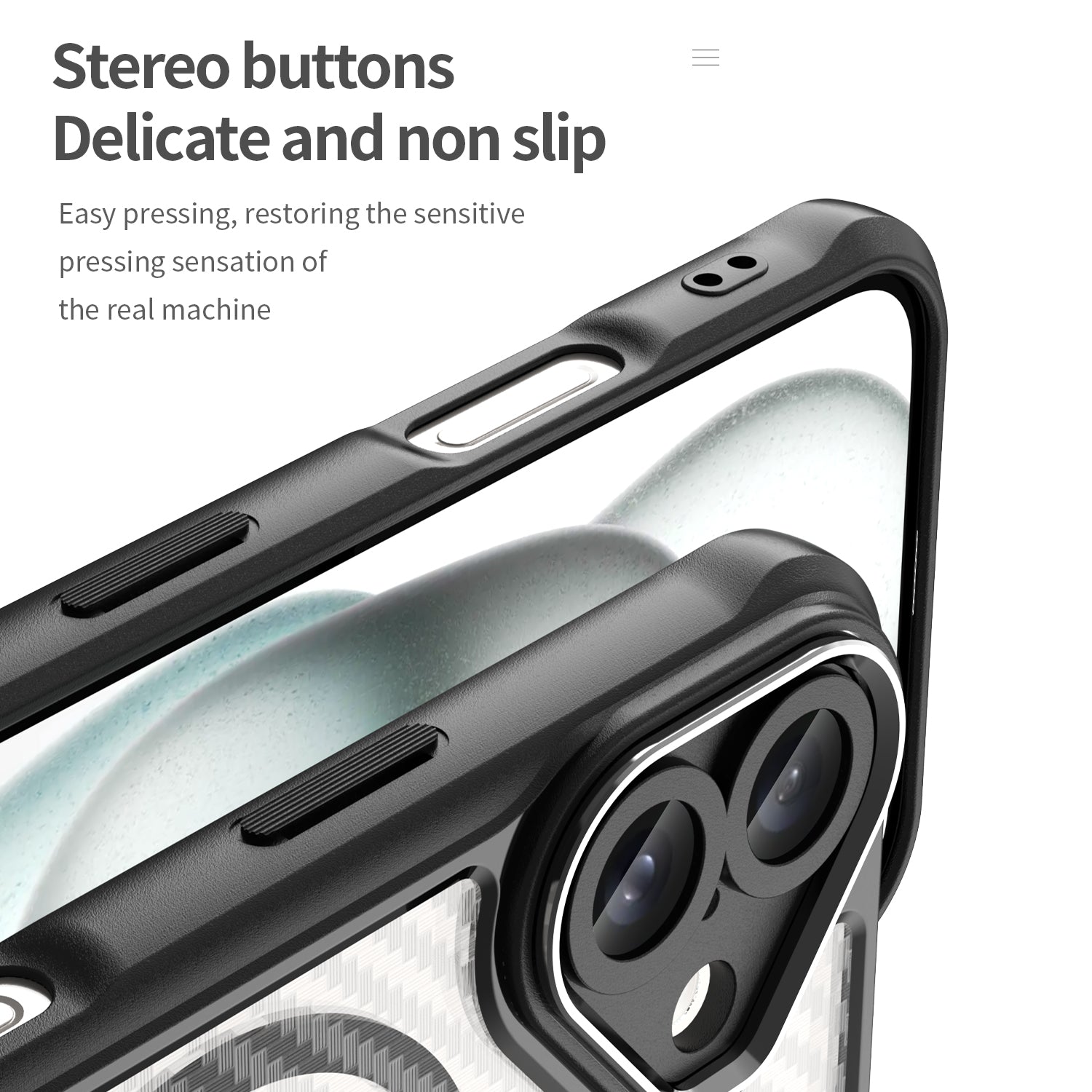 Panda Baby Magsafe Case (CarbonMag Series) will bring you a sense of luxury and technology. The translucent matte back restores the original beauty of the iPhone perfectly, the unique carbon fiber texture not only prevents fingerprints but also creates a sense of mystery. The case is compatible with Magsafe/QI2 technology, can be used with a variety of magnetic accessories, charging is safe and fast. The reinforced air bags at the four corners and soft TPU frame works together to protect the phone from falling.