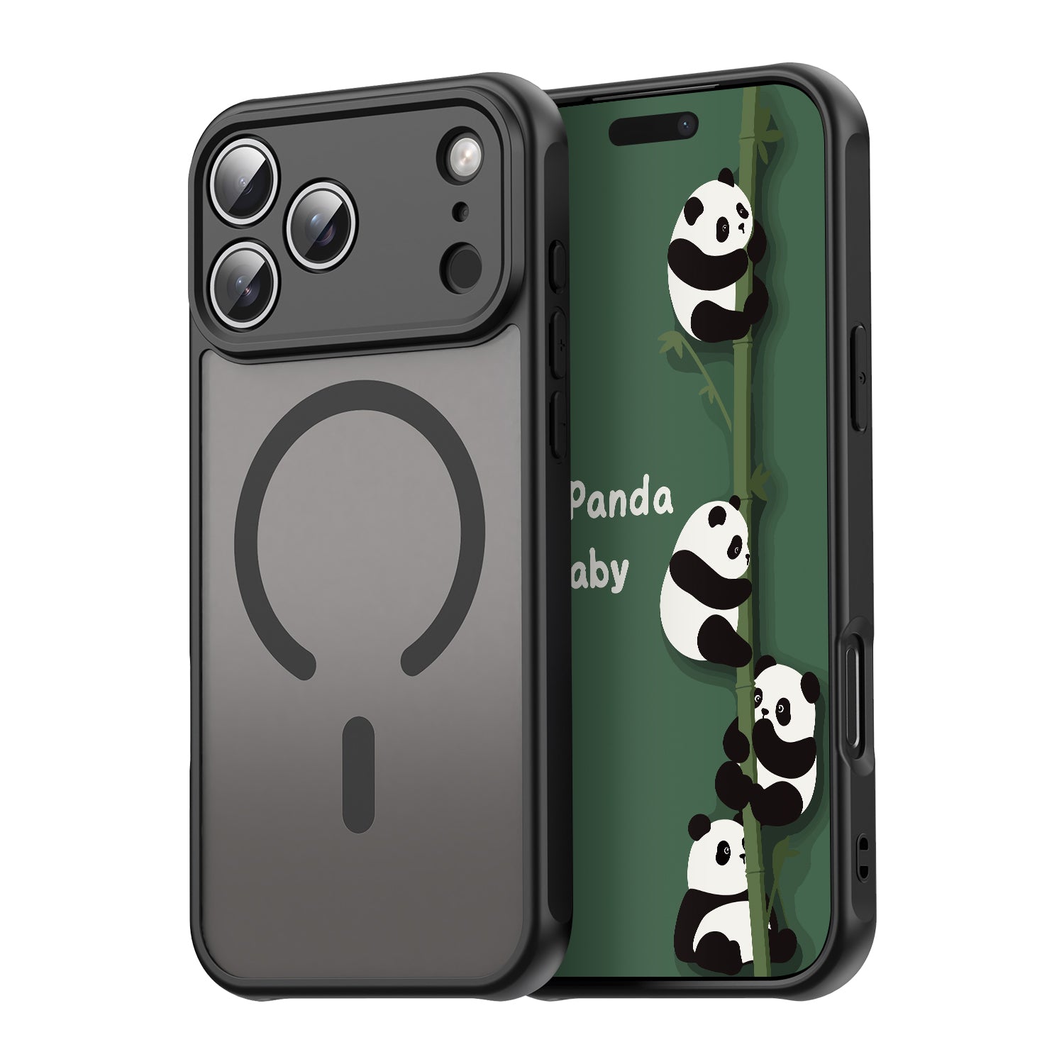 Panda Baby MagEasy Magsafe Case will bring you a sense of luxury and technology. The translucent matte back restores the original beauty of the iPhone perfectly, the unique texture not only prevents fingerprints but also creates a sense of mystery. The case is compatible with Magsafe/QI2 technology, can be used with a variety of magnetic accessories, charging is safe and fast. The reinforced air bags at the four corners and soft TPU frame works together to protect the phone from falling.
