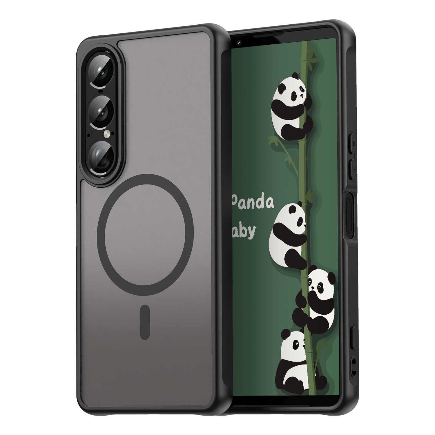 Panda Baby MagEasy Magsafe Case will bring you a sense of luxury and technology. The translucent matte back restores the original beauty of the iPhone perfectly, the unique texture not only prevents fingerprints but also creates a sense of mystery. The case is compatible with Magsafe/QI2 technology, can be used with a variety of magnetic accessories, charging is safe and fast. The reinforced air bags at the four corners and soft TPU frame works together to protect the phone from falling.